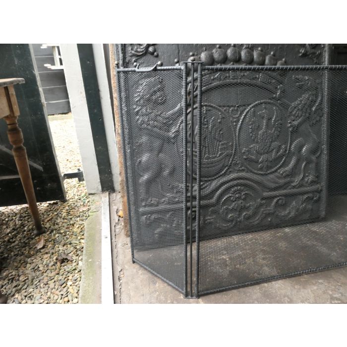 3 panel wrought iron fire screen. Replica of an antique French original. Produced exactly as it used to be made and they are thus difficult to distinguish from an old original.